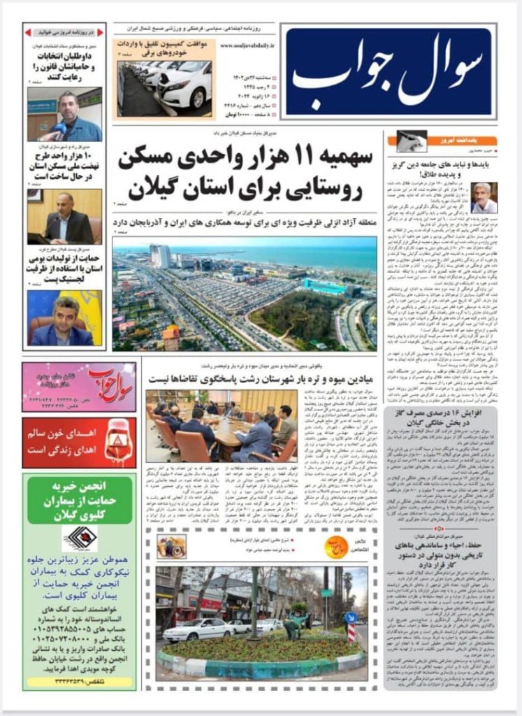با دعوت رسمی از جناب آقای دکتر کارگرنیا، ریاست محترم شورای اسلامی شهر رشت،و همچنین دکتر حسن کریمی و دکتر مهیار سماکچی، از دیگر اعضای محترم شورای شهر، صبح امروز مورخ ۱۴۰۲/۱۱/۱۲ جلسه ی صمیمانه ای برگزار گردید که طی آن موضوعات مختلفی مورد مشورت قرار گرفت. از جمله این موضوعات برگزاری هرچه باشکوه‌تر جشن‌های […]